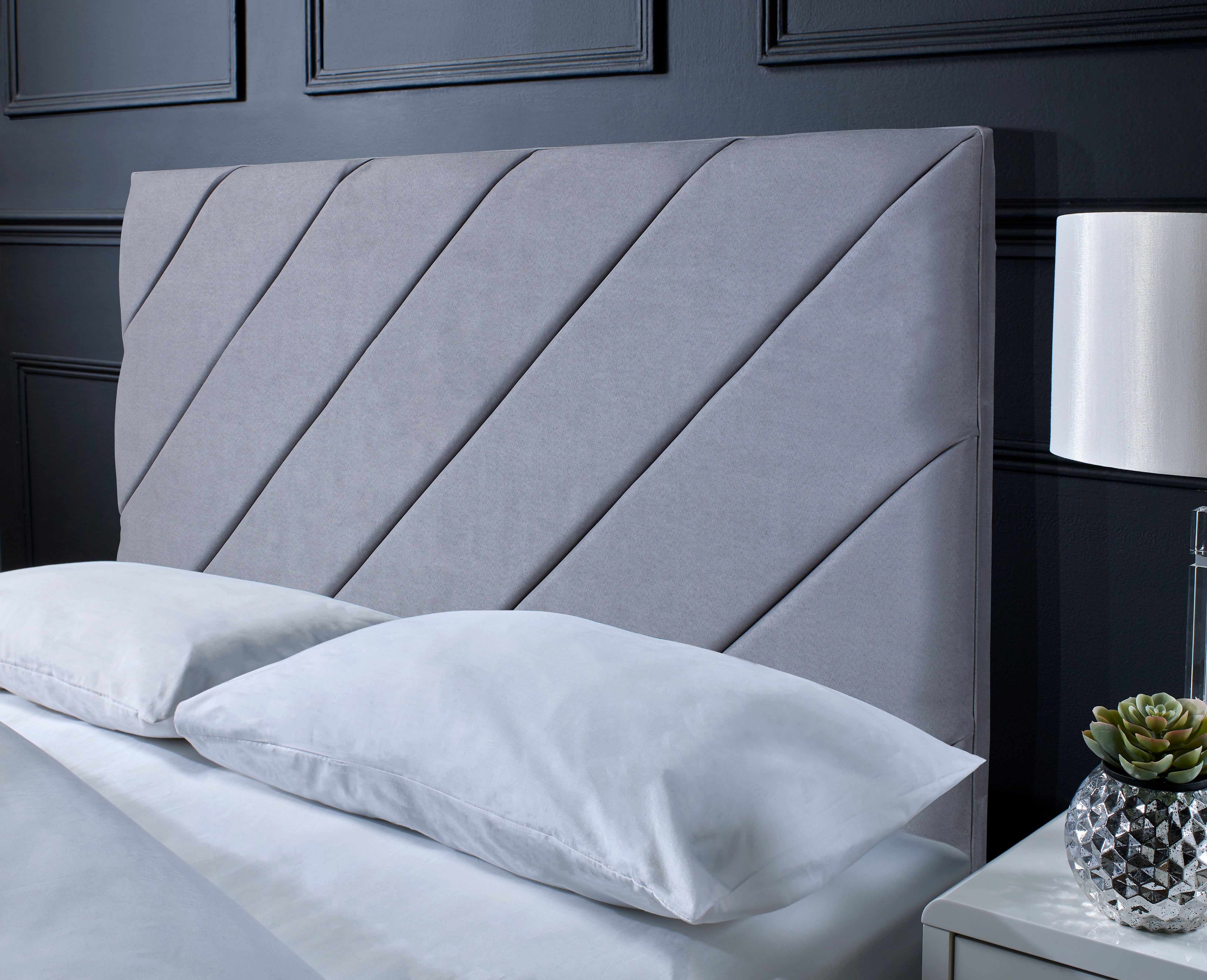 Every Headboards.Com Divan Bed is customizable, and the base package includes a 26" headboard that matches the bed. However, if you desire something particularly exceptional, there's an option to enhance your bed with our exquisite 54" floor-standing headboard.