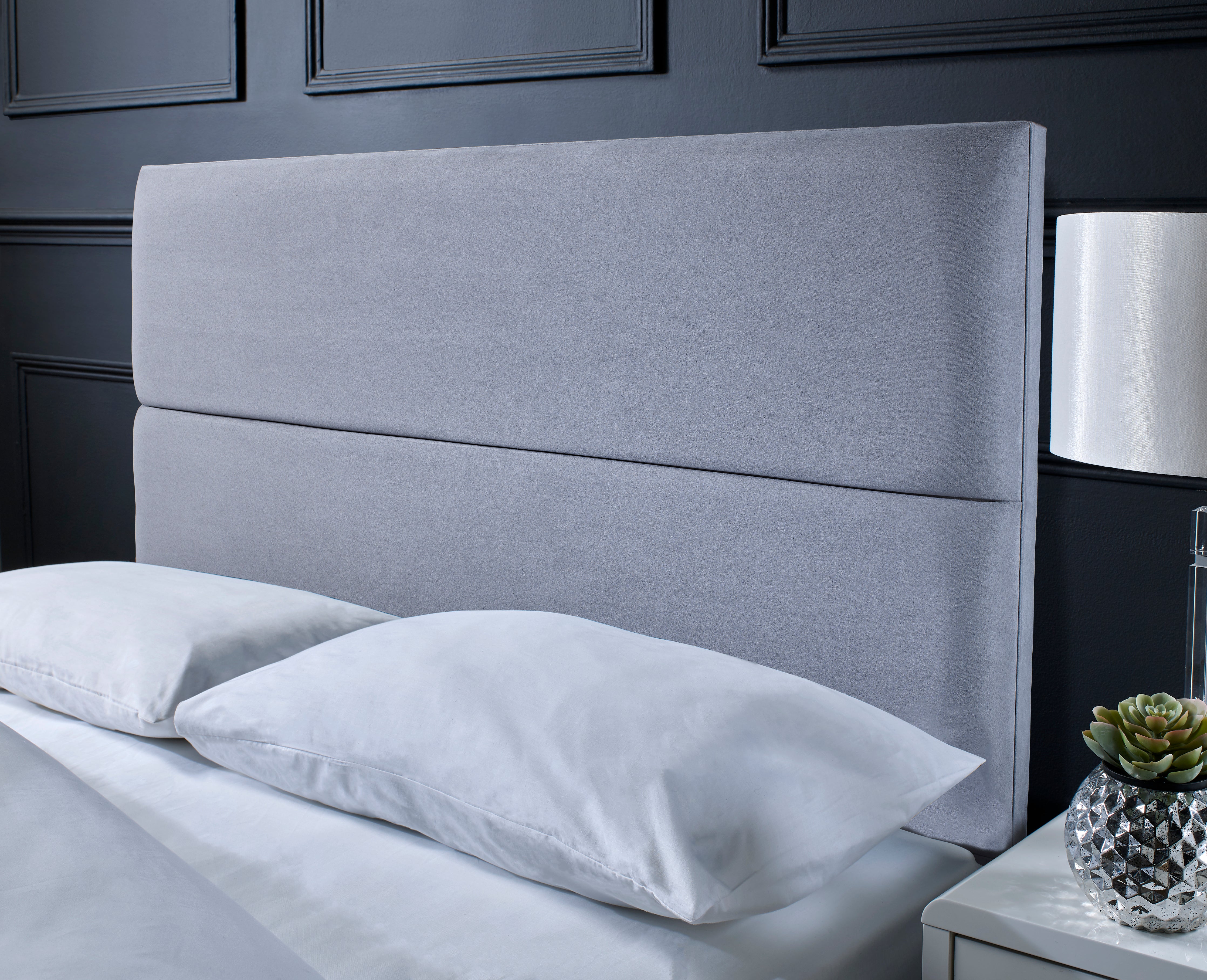 Every Headboards.Com Divan Bed is customizable, and the base package includes a 26" headboard that matches the bed. However, if you desire something particularly exceptional, there's an option to enhance your bed with our exquisite 54" floor-standing headboard.